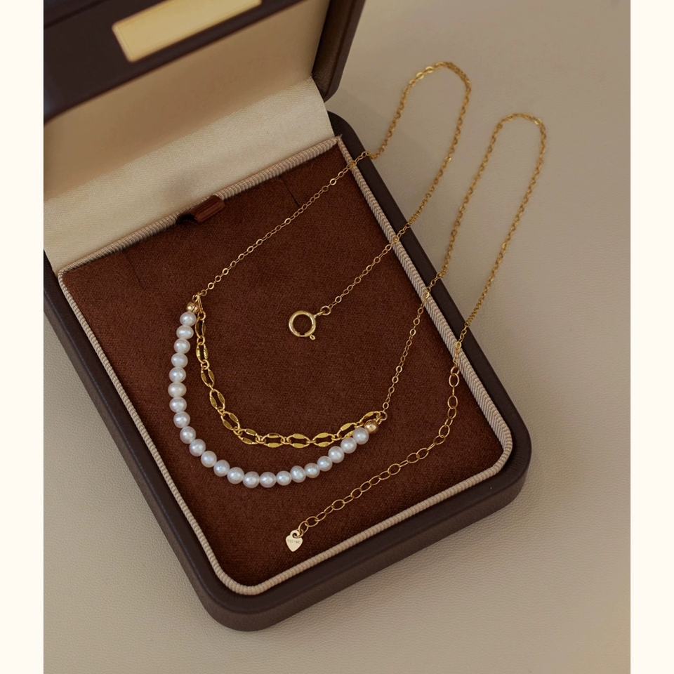 Exquisite Smile Natural Freshwater Pearl Necklace 925 Silver 18K Gold Plated Versatile Clavicle Sweater Chain Fashion Layered