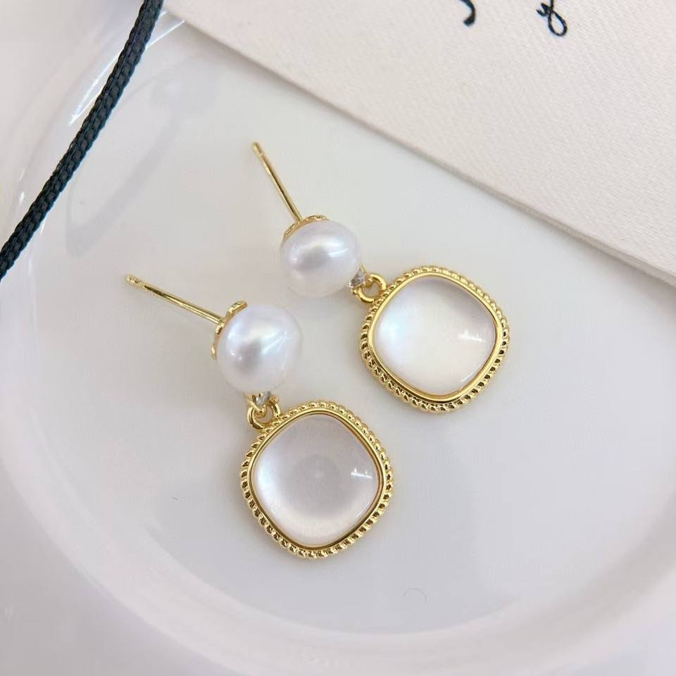 Exquisite Versatile French Retro Freshwater Pearl Dangle Earrings New Small Internet Fashion for Women