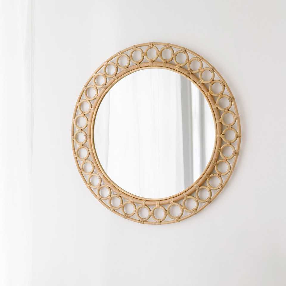 Exquisite Wicker Wall Mounted Mirror Rattan Wall Mirror Frame Decorative Accent Ideal For Warm Home Styling And Natural Spaces