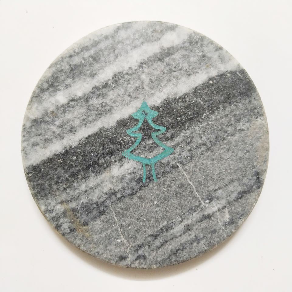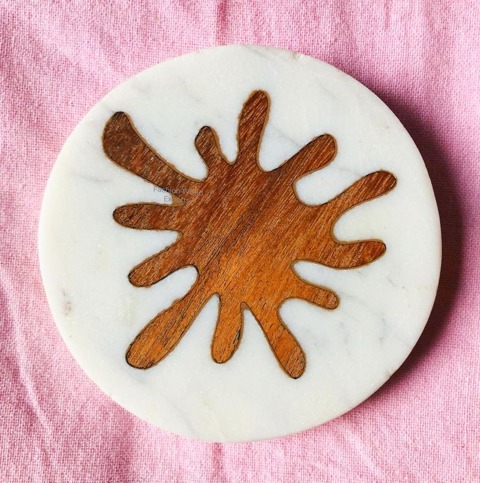 Exquisite Wood Inlay Marble Stone Coasters Luxury Handmade Table Decor & Gift Set Mats & Pads