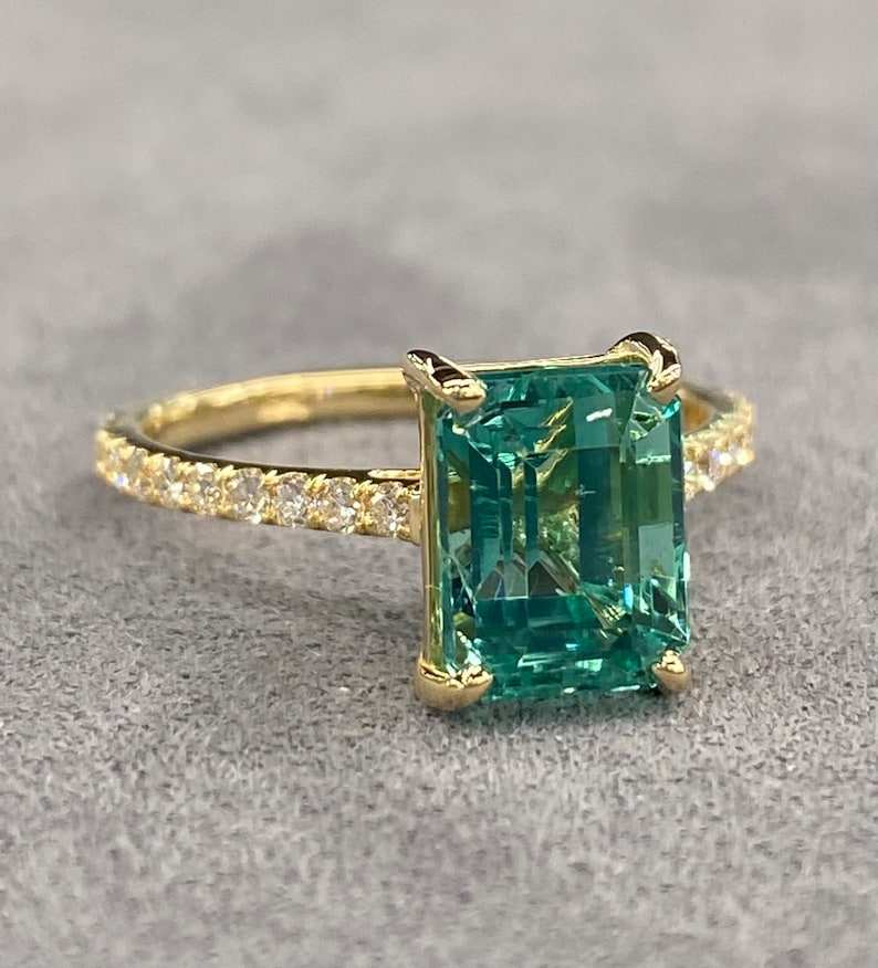 18K Yellow Gold Plated Solitaire Design Exquisite Zambian Green Emerald & Zircon Ring Very Clean Premium Engagement Jewelry
