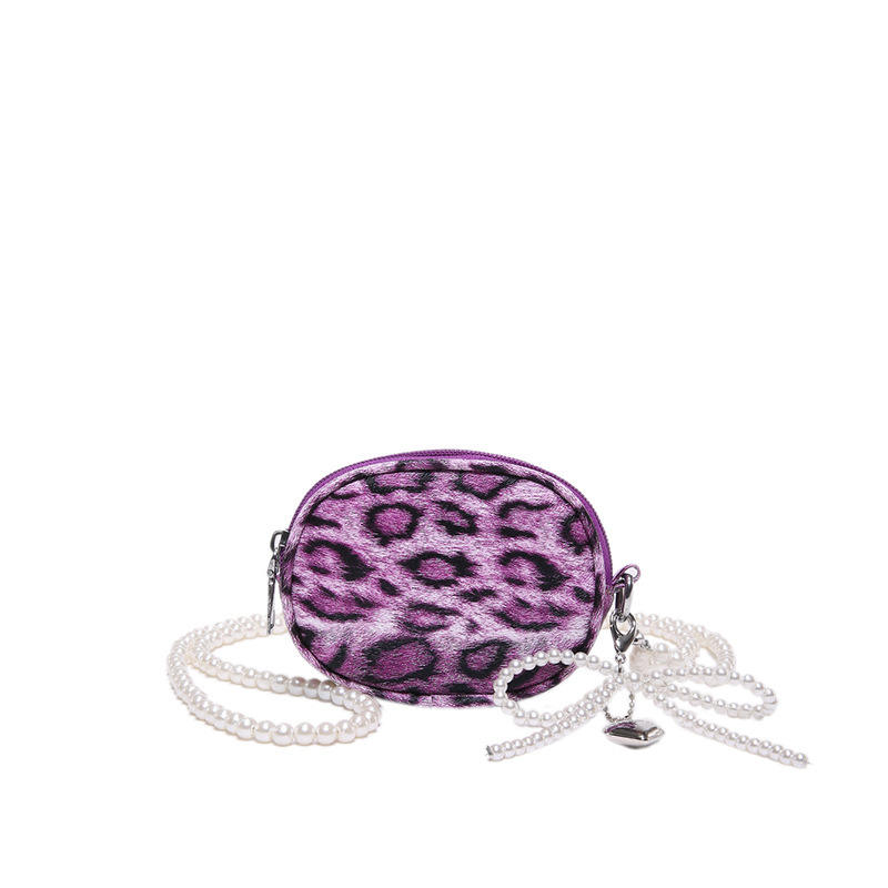 Exquisite coin purse, oval design, pink leopard print and pearl embellishment