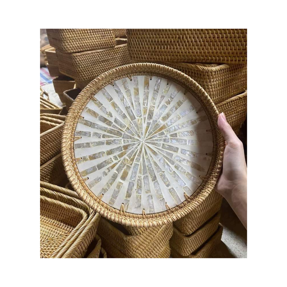 Exquisite handwoven rattan basket round rattan serving tray with handles perfect for dining and display