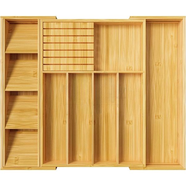 Extendable Bamboo Kitchen Utensil Organizer Storage Box with Knife Holder Bamboo Knife Storage Box
