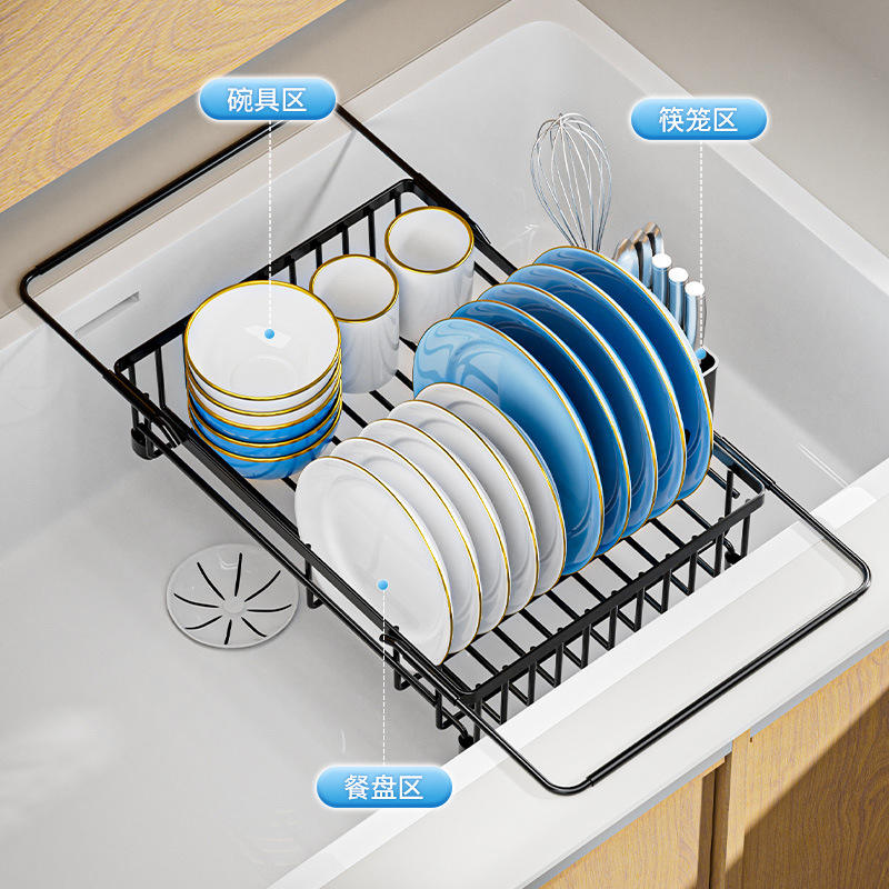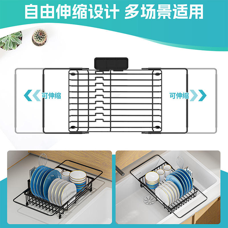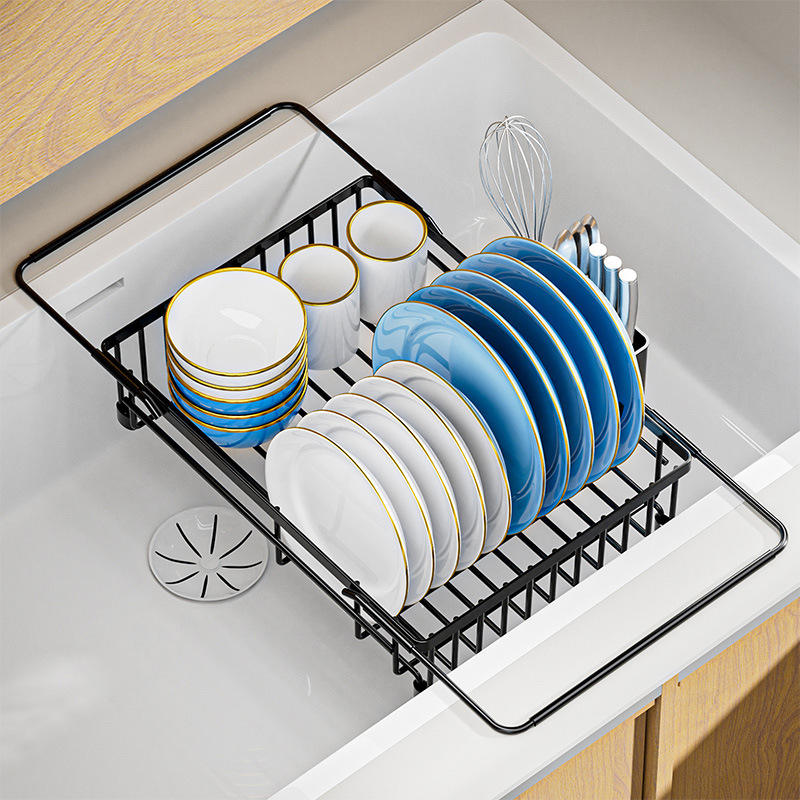 Extendable Sink Dish Rack Large Capacity Draining Rack For Kitchen Plates Bowls Cups Storage
