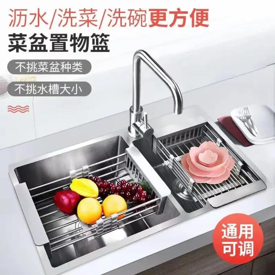 Extendable Stainless Steel Dish Rack L Collapsible Kitchen Sink Drainer Storage Basket