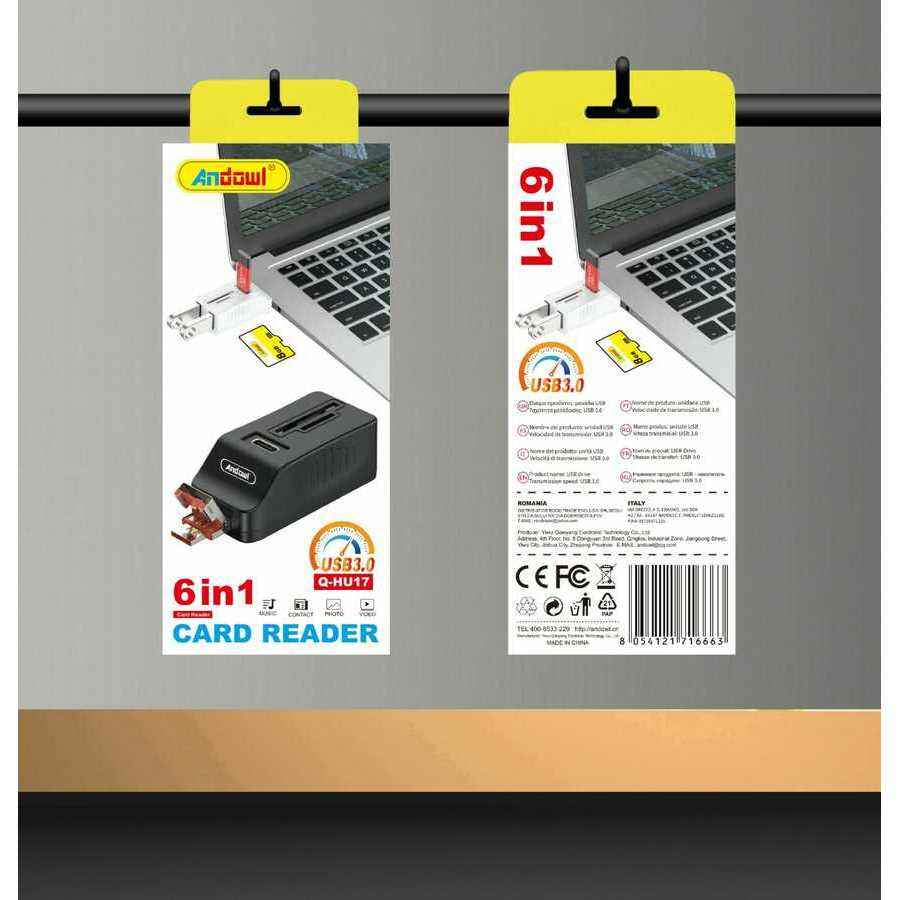 Andowl External USB Card Reader Q-HU17 USB 3.0 6 In 1 For POS Use