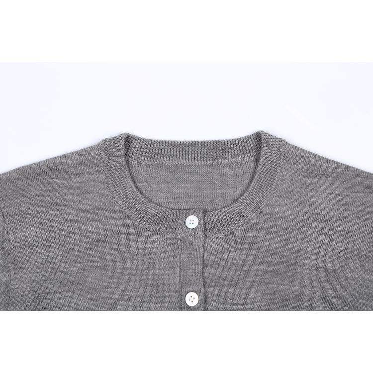 Extra Fine Thin Lightweight Merino Wool Knitted Women's Cardigan Fashionable Crew Neck Long Sleeves Solid Pattern Autumn Season