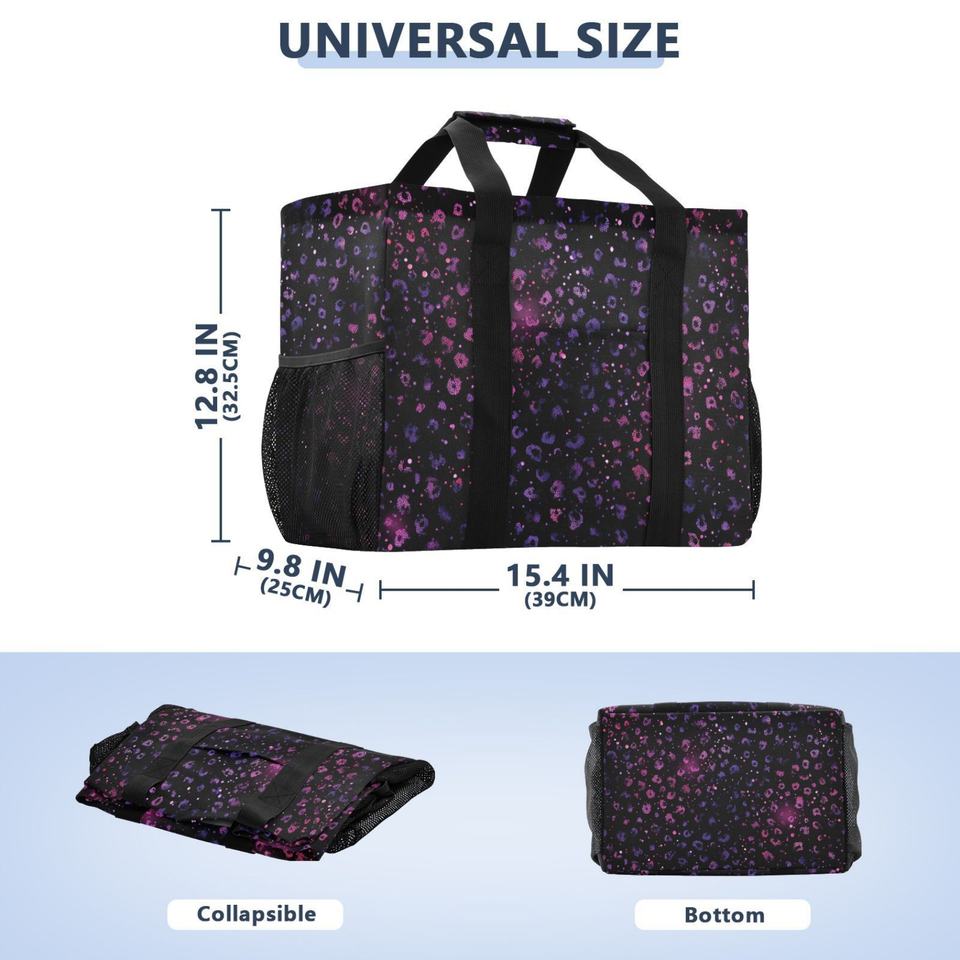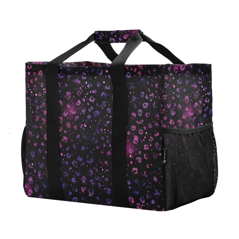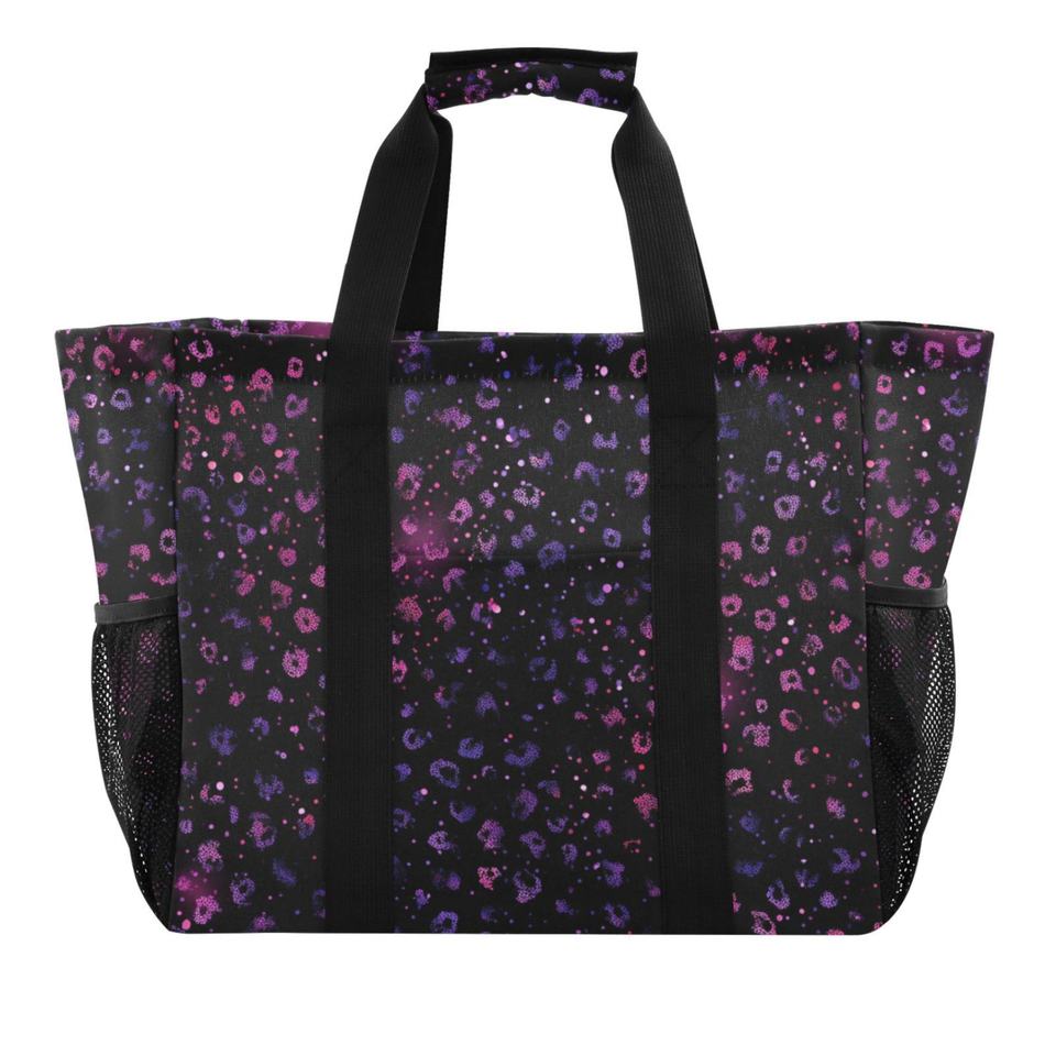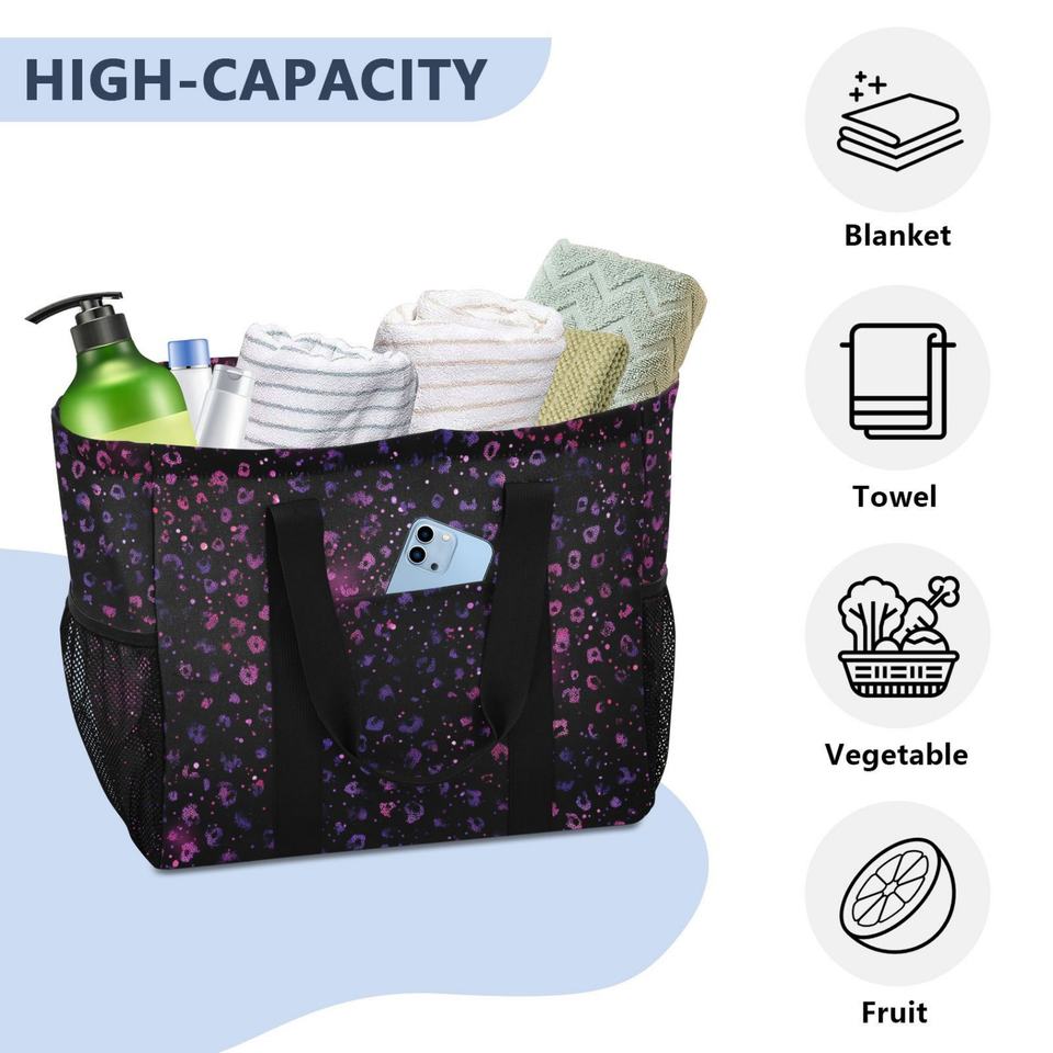 Extra Large Black Leopard Print Patterns Customs logo Mesh Pocket Wash Tote Beach Bag