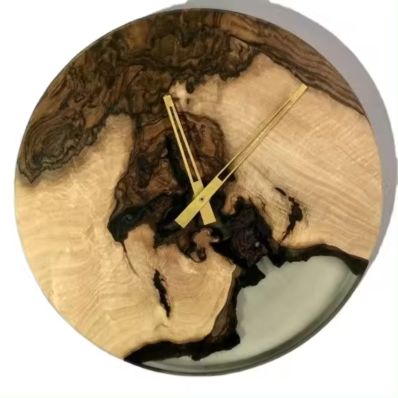 Extra Large Modern Design Handmade Wood Epoxy Resin Wall Clock 100% Best Quality with Needle Display