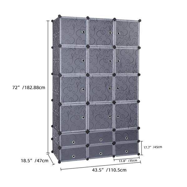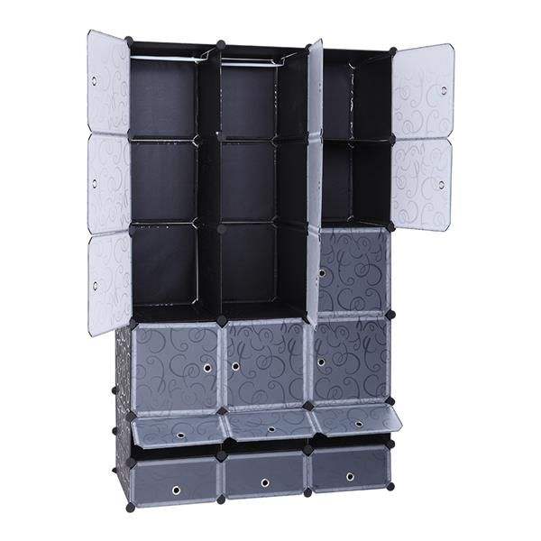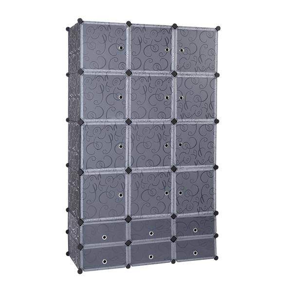 Extra Large Modular Cubby Shelving Storage Organizer 18 Cube DIY Wardrobe with Clothes Rod Portable Wardrobes