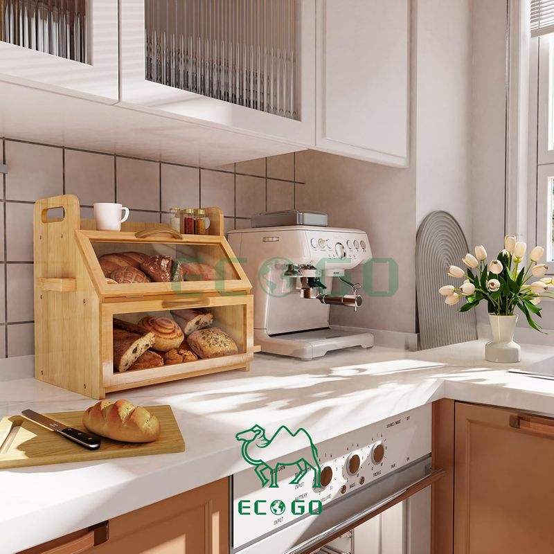 Extra Large Organic Bamboo Bread Box Double Layer Natural Bamboo Bread Box for Homemade Bamboo Bread Storage Container