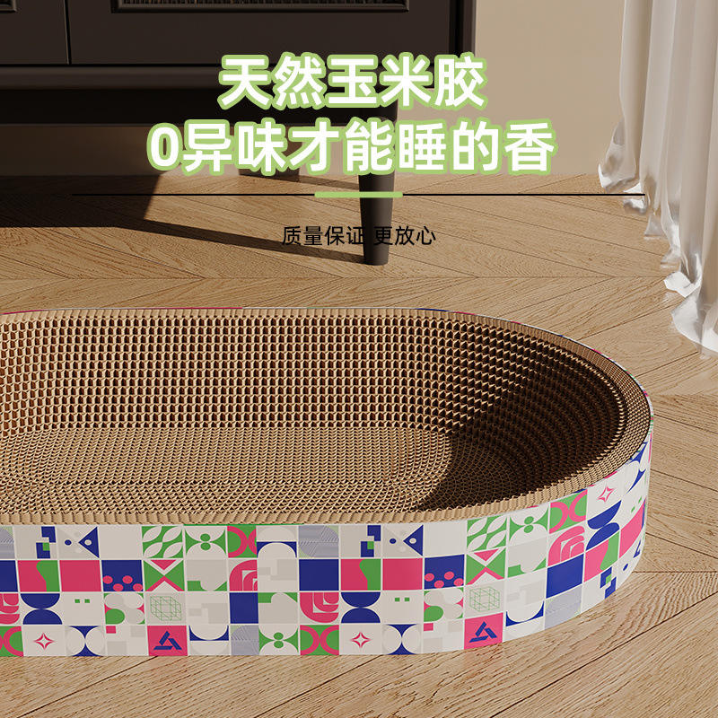 Extra Large Oval Four Seasons Cat Bed with Scratch-Resistant Wear-Resistant Chip-Free Scratching Board Cat Tree & Scratcher Toy