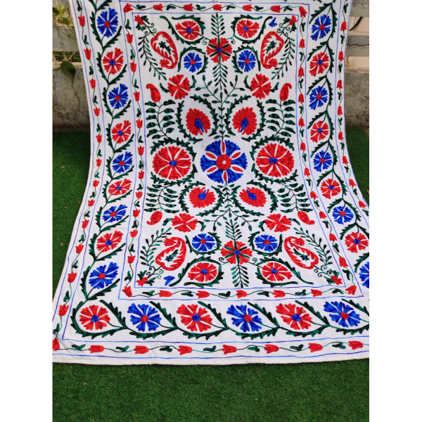 Traditional Uzbek Suzani Embroidered Bed Sheet
