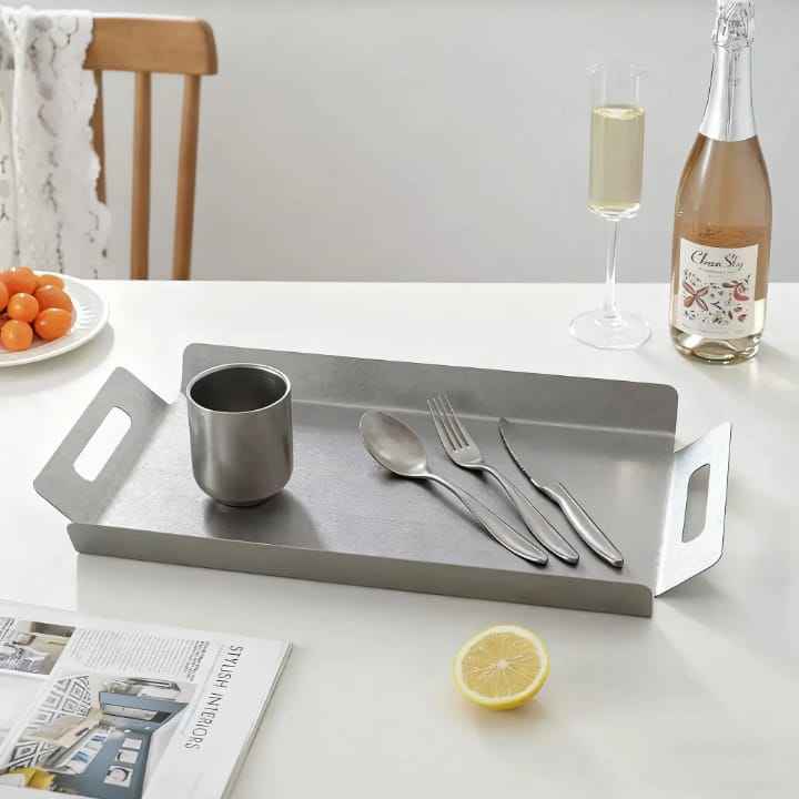 Extra Long Rectangular Stainless Steel Serving Tray Footed Industrial Style Buffet Food Platter Minimalist Catering Server