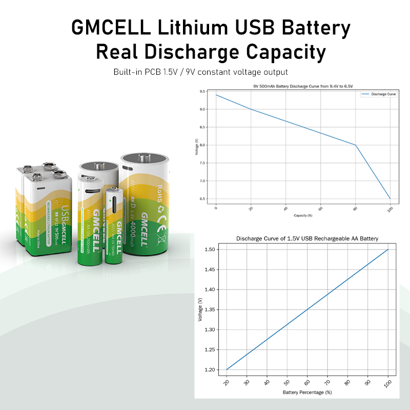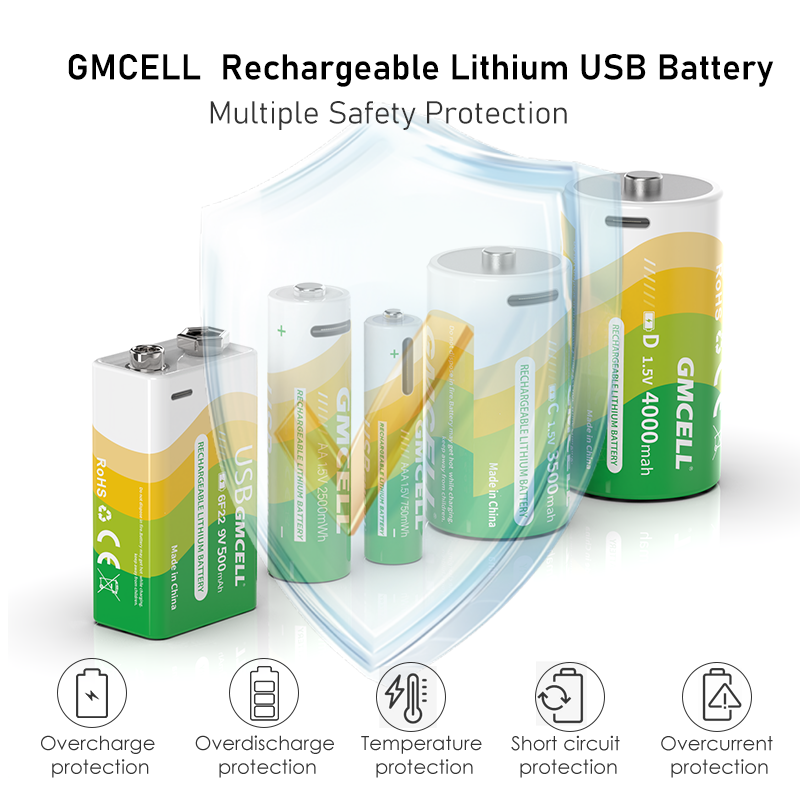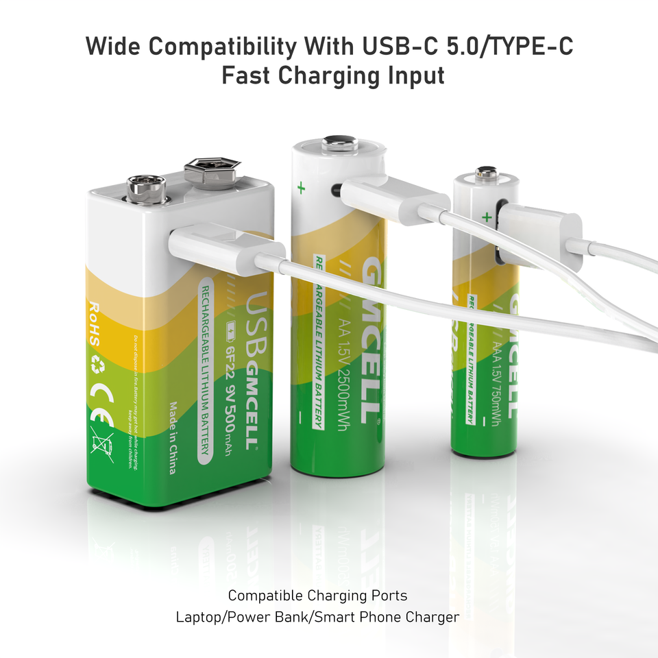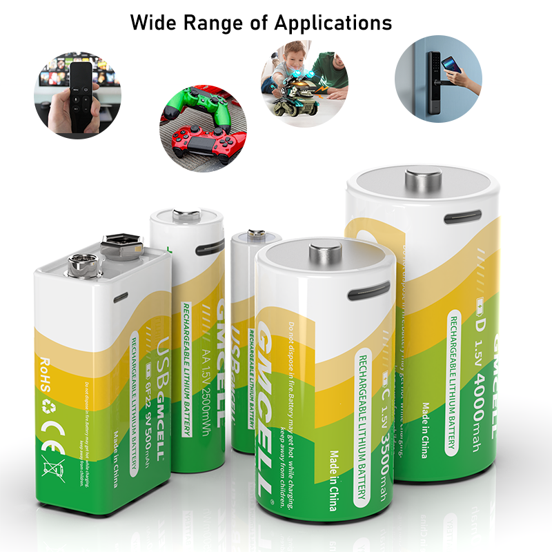 Extra Portable Battery AA AAA C D Size Li-Ion USB-C Battery LR14 LR20 GMCELL 1.5V Rechargeable USB Batteries