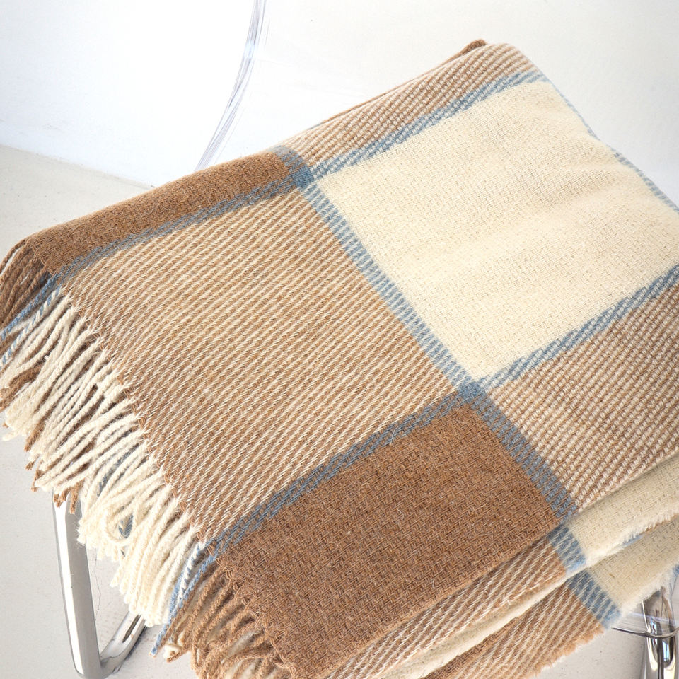 Extra Soft Wool Throw 70% New Zealand Wool 170x210 cm Woven Blanket in White Grey & Blue Flannel for Bed or Couch