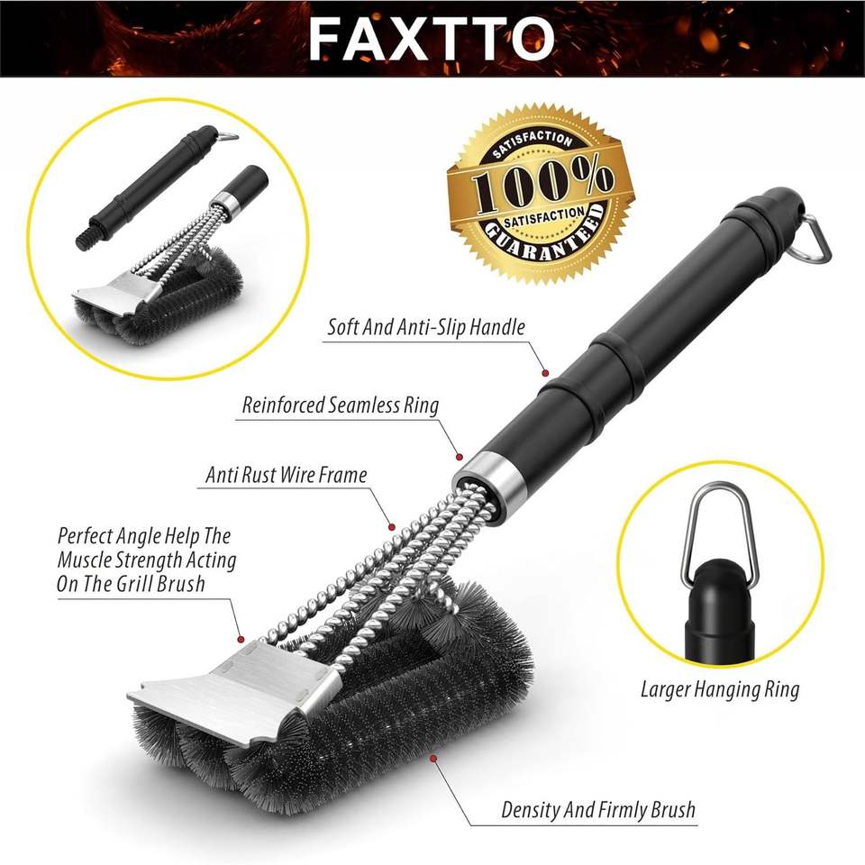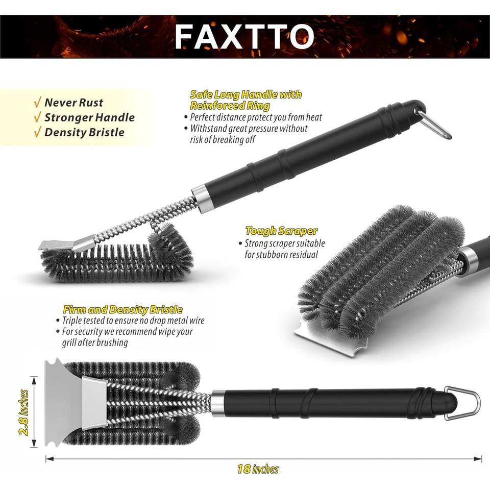 Extra Strong Stainless Steel BBQ Brush with Long Handle Triple Barbecue Scrubber Cleaning Accessory Safe Wire Grill Brush