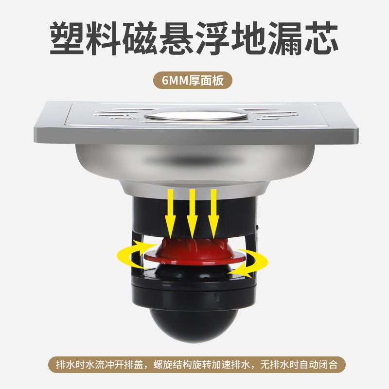 Wei Liang Extra Thick 6 cm Stainless Steel Floor Drain Bathroom Large Displacement Self-Sealing Deodorizing Core Bright Square