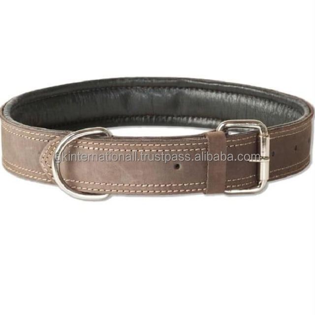 Extra comfort Soft Padded Double Stitching Durable Brown Leather Dog Collar Pet Collar with Stainless Steel Nickel Hardware