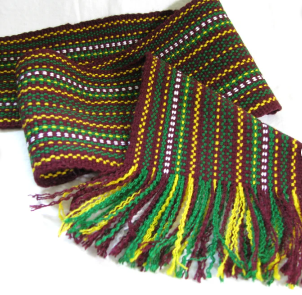 Extra wide Cossack woven sash belt 4Green maroon & yellow hand crafted waistband Colorful ethnic belt Unisex