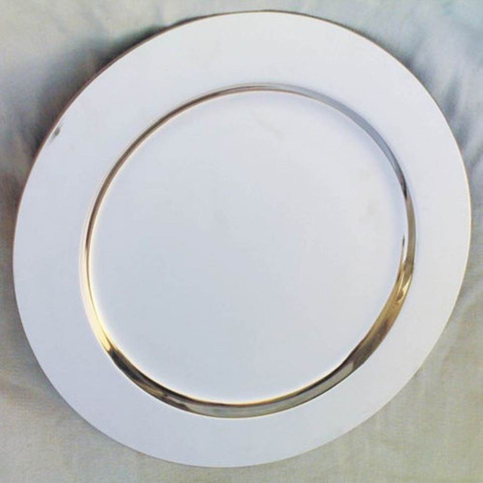 Extravagant Metal Charger Plate White Powder Coated Design With Golden Round Strip 13 Inches Metal Under Plate Restaurant Supply