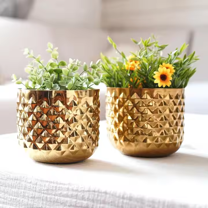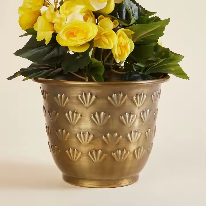 Extravagant Metal Planter Hammered Design Vase With Three Legs Metal Planter Garden Decorative Accessories Golden Metal Planter