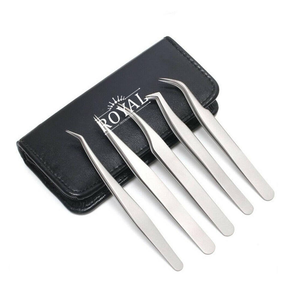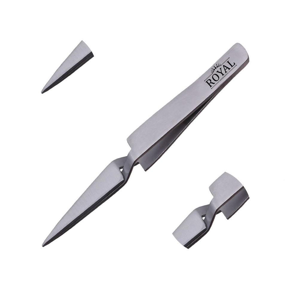 Extreme Beauty Silver Tone Volume Isolation Eyelash Tweezers Set with Magnetic Case for Lash Extension