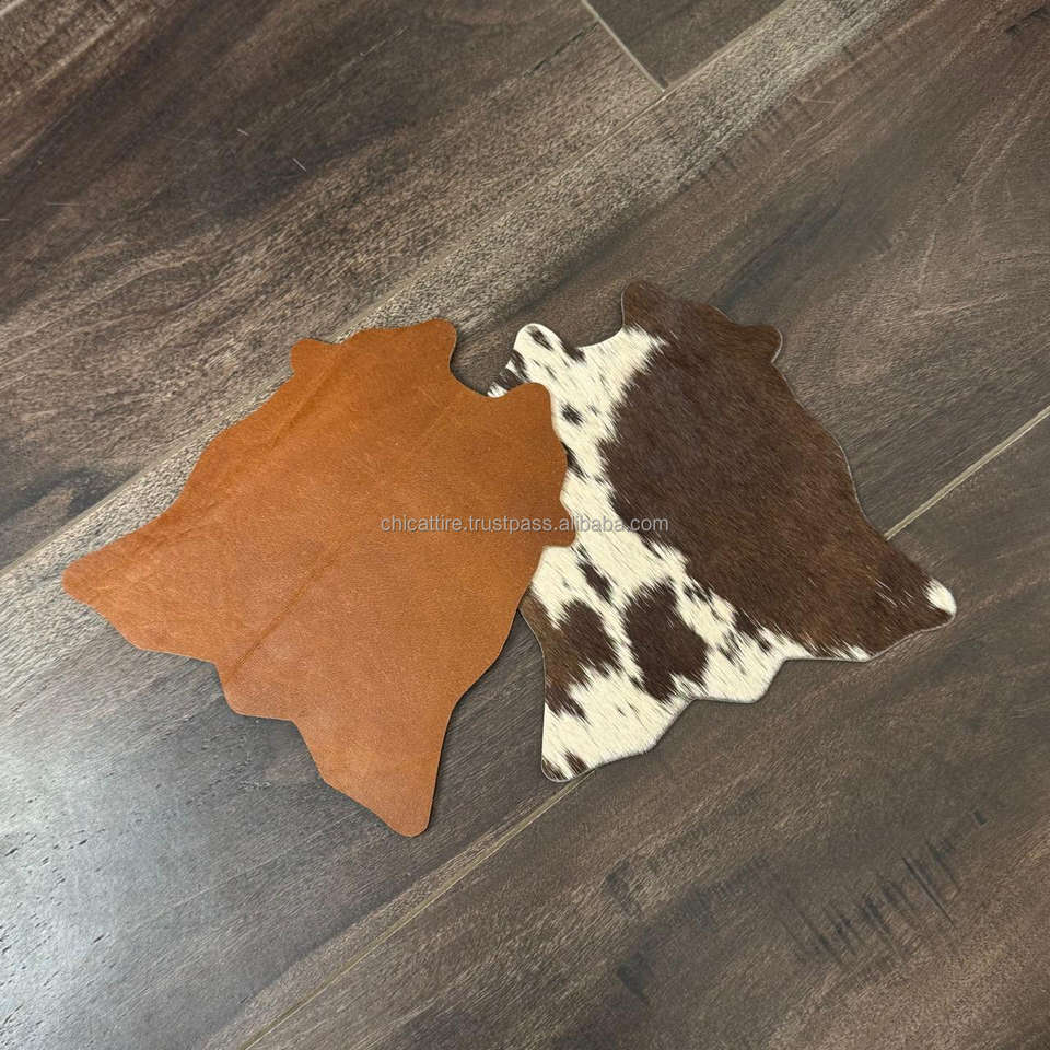 Extreme High Quality Rustic Cowhide Coaster Set Unique Western Hair on Hide Genuine Leather Coaster for Drinks Home Decor Gifts