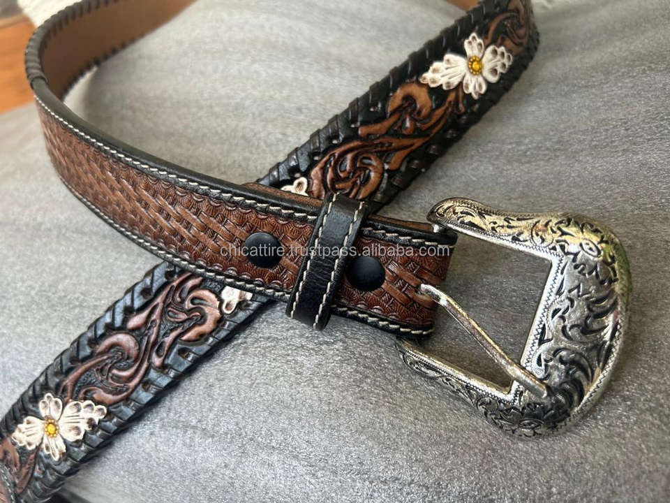 Extreme Quality Personalized Hand Tooled Full Grain Genuine Leather Western Belt Custom White Floral Cowgirl & Cowboy Belts