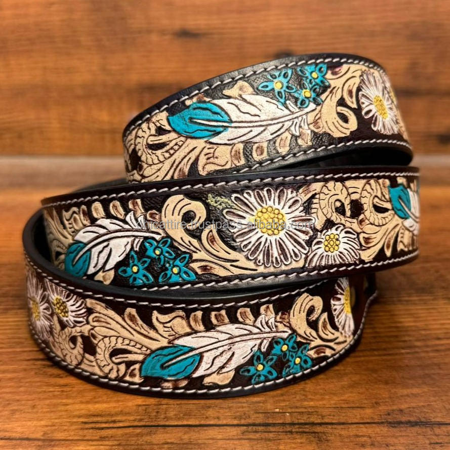 Extreme Quality Personalized Hand Tooled Leather Western Replacement Purse Strap Camera & Guitar Strap With Antique Brass Snaps