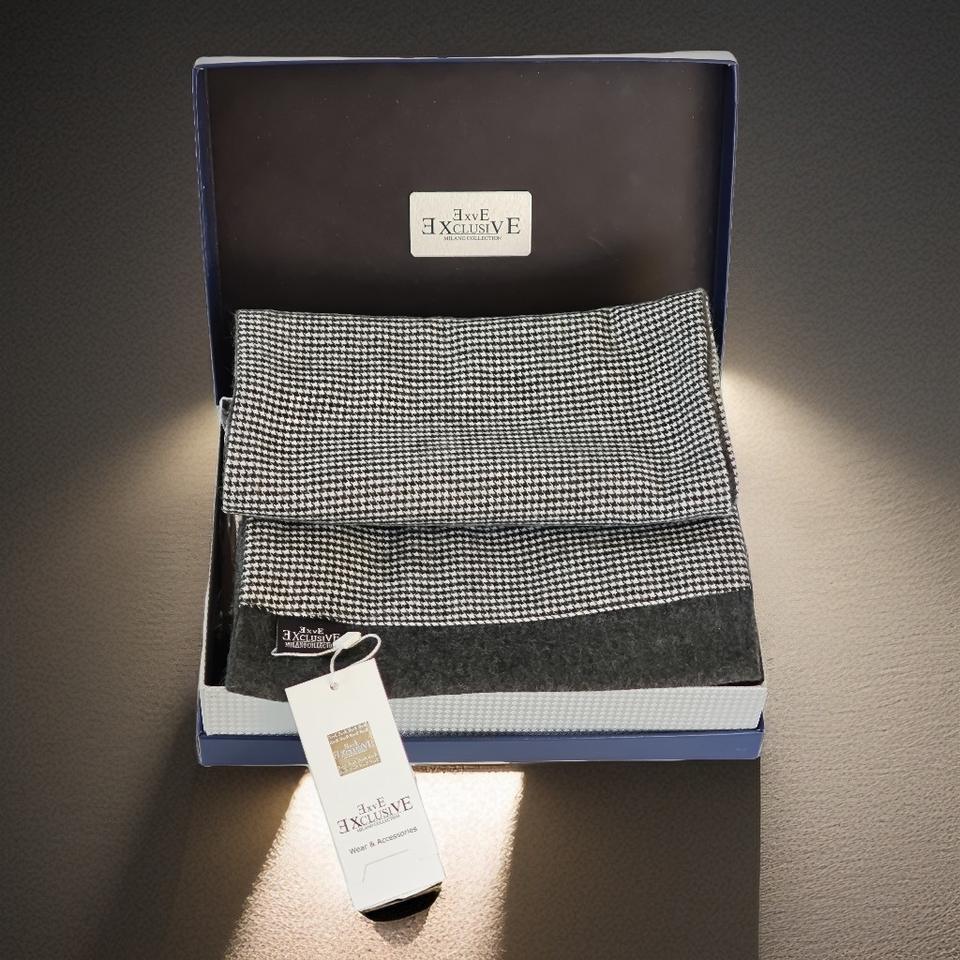 Exve Exclusive PU Leather Boxed Double Sided Wool Scarf Shawl Camisole Smoked White Houndstooth Design Christmas Traditional