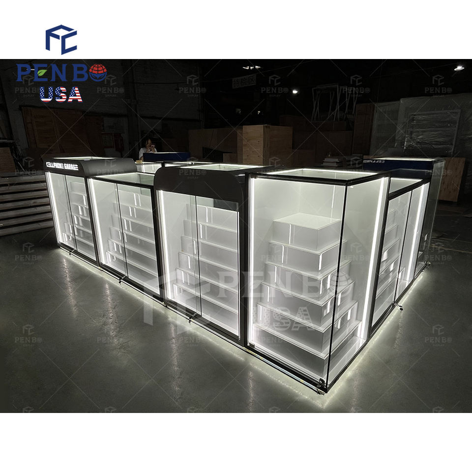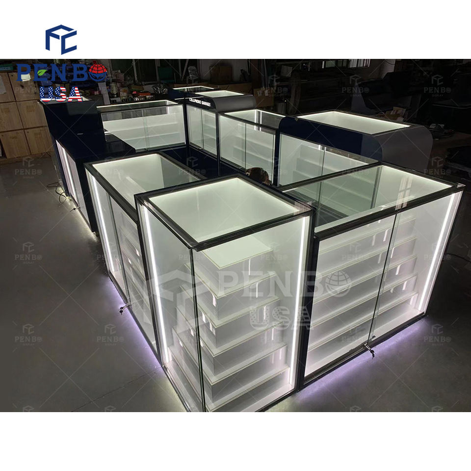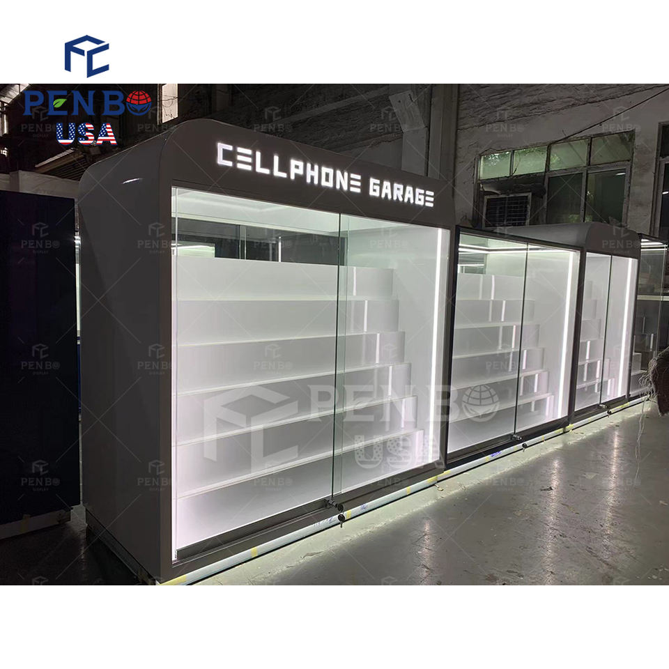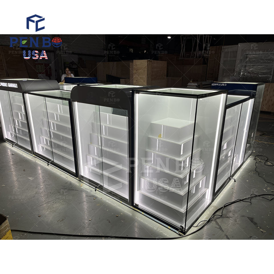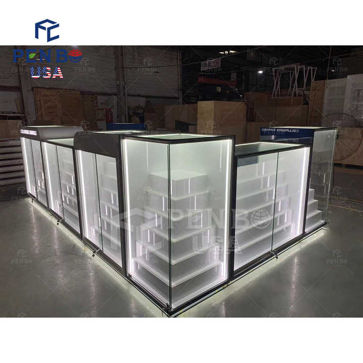 USA LOCAL Custom Mobile Phone Store Display Cabinet Led Lighting Glass Cellphone Kiosk Showcase Phone Accessories Kiosk Design
