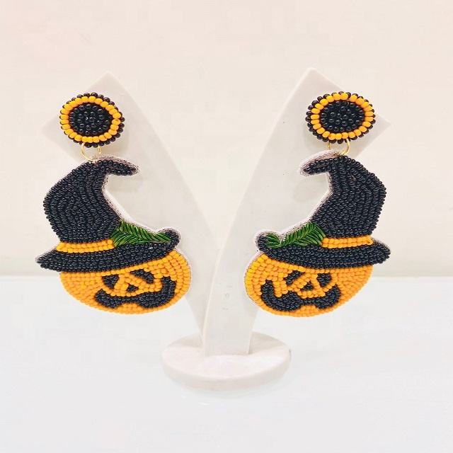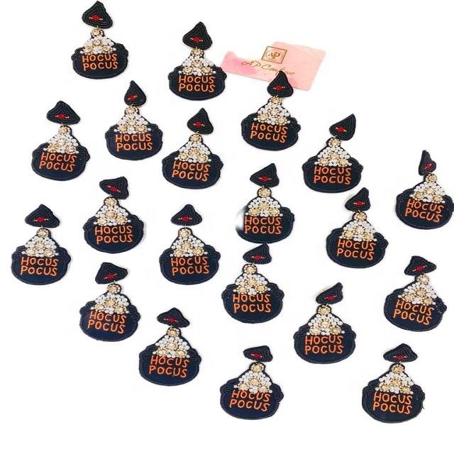 Indian Handmade Customized Multicolor Hocus Pocus Seed Beaded Drop Earrings Nickel-Free Metal Custom Logo Option for Halloween