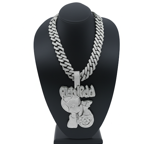 Eye Catching Trendy Hip Hop Pendant with Chain for Men Featuring 925 Sterling Silver Set Dazzling Cut Diamonds Party