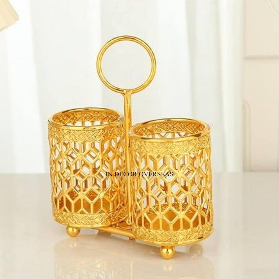 Eye Catching Look High Grade Gold Plated Superior Quality Metal Wire Made Cutlery Set Holder Dining Table Centerpiece Supplies