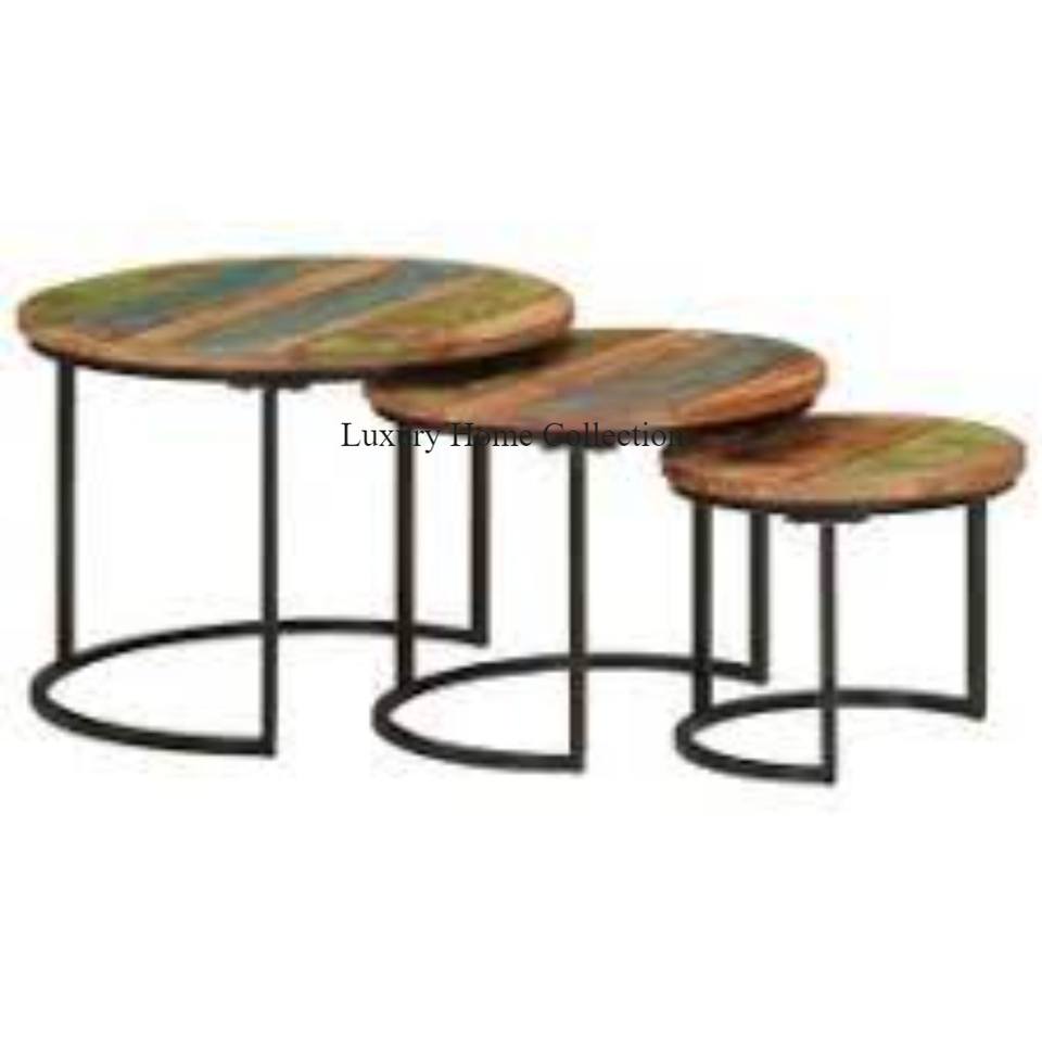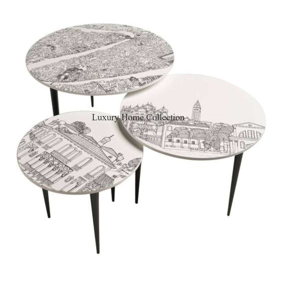 Eye Catching Stylish Modern Nesting Table and Center Table Round Shape Large Size Gold Color 3 Legs Frame With Marble Top
