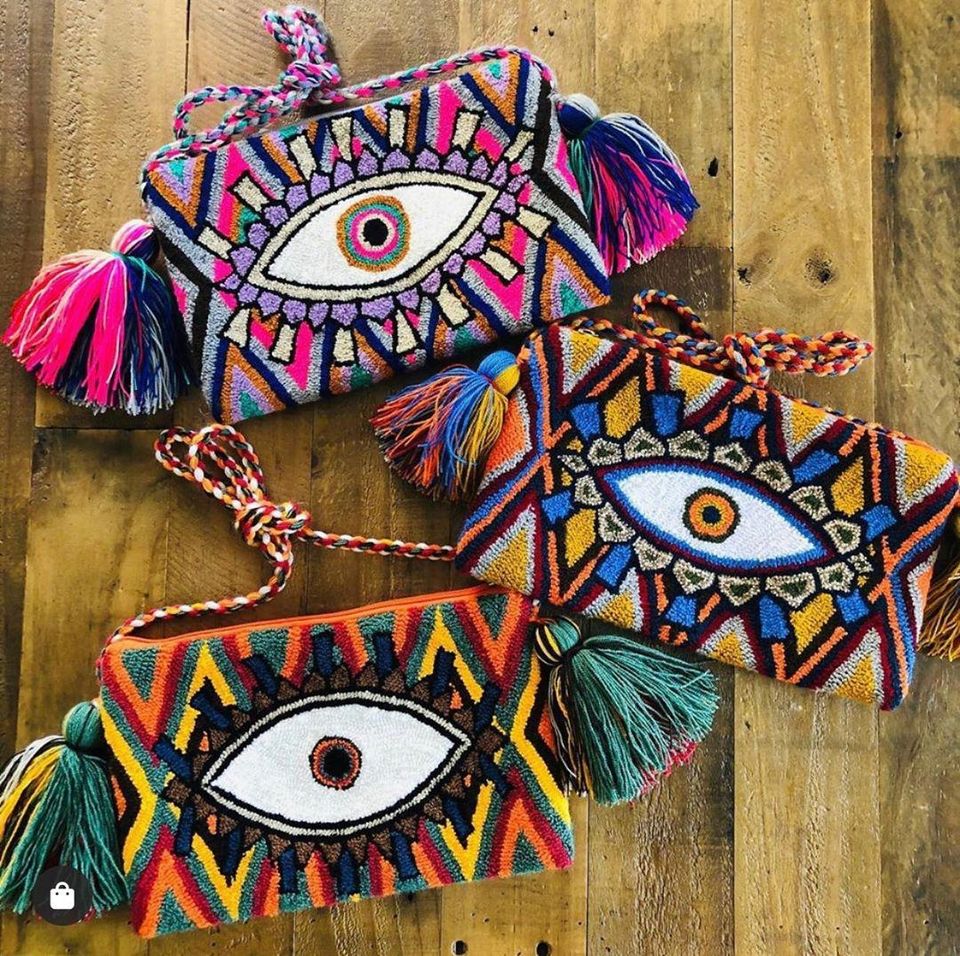 Eye Clutch Handbag Boho Lifestyle Summer Color Wool Embroidery Crossbody Clutches Tribal Bag Purse