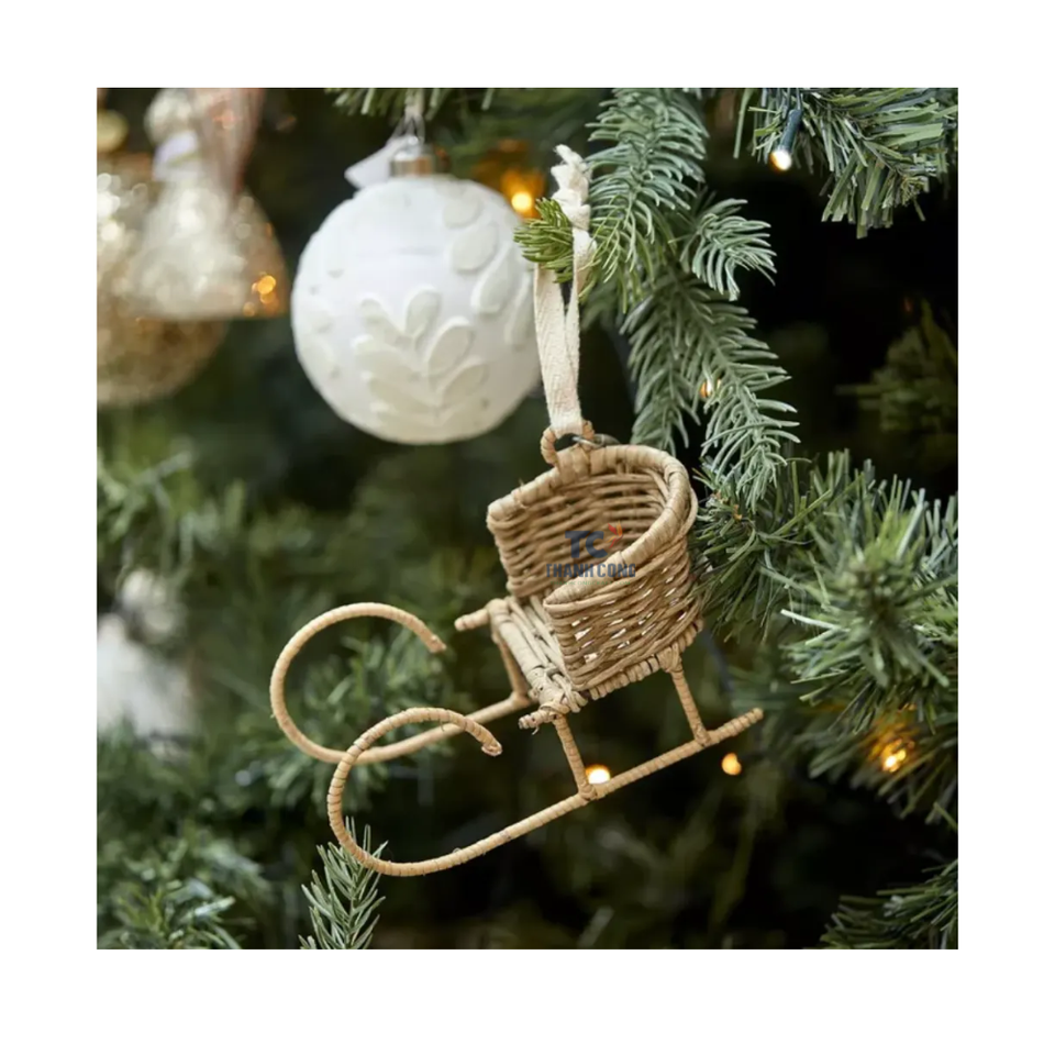 Eye-catching Custom Natural Rattan Christmas Sleigh Wicker Tree Ornament Christmas Decoration Made in Vietnam