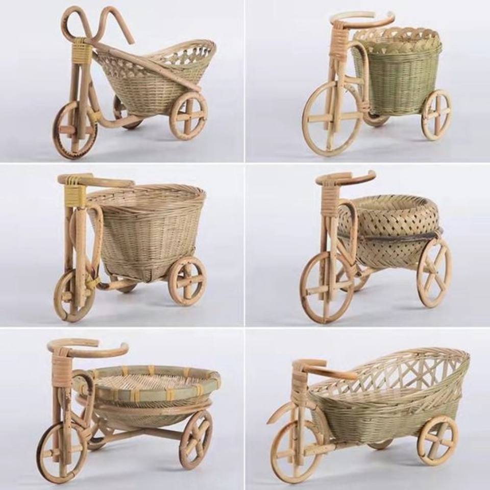 Eye-catching Mini Bamboo Wicker Bicycle Basket for Fruit, Food Storage and Kitchen Decoration Planter Pot Made in Vietnam
