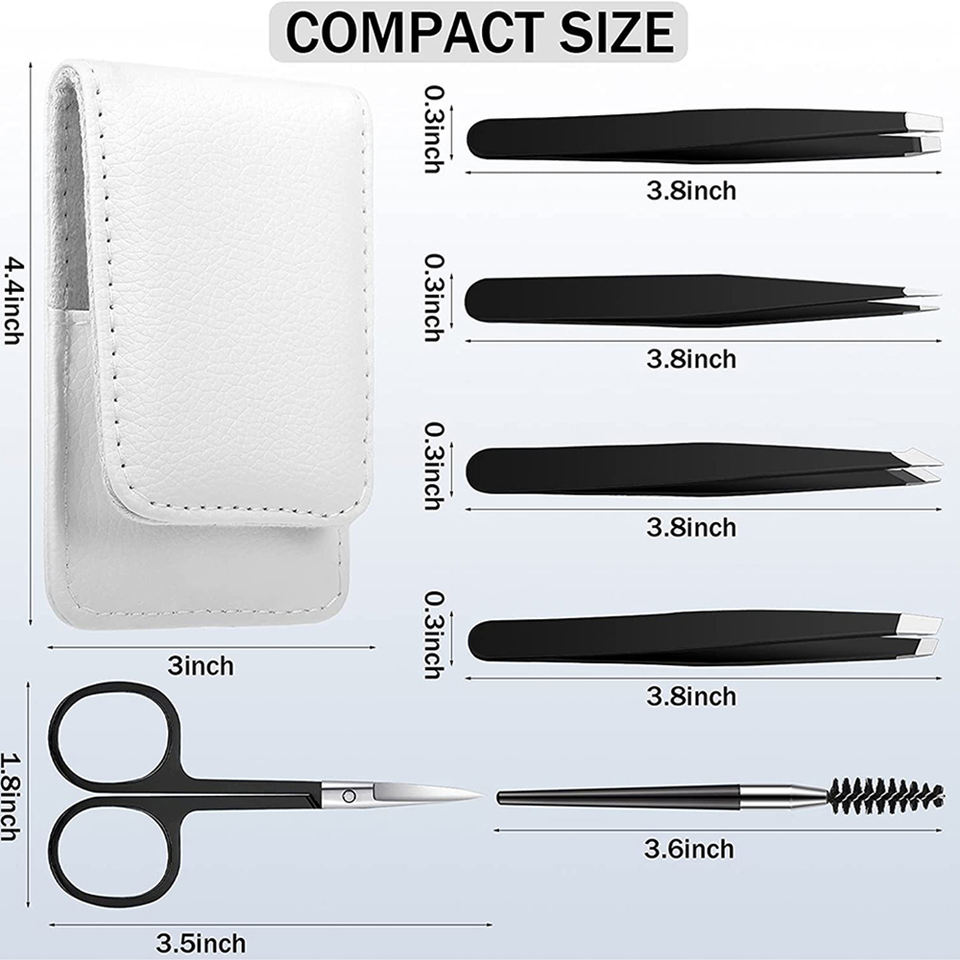 Eyebrow Tweezers Set Black Color Coated With Leather Pouch Hair Plucker Beauty Tool Hair Removal Plucking Kit
