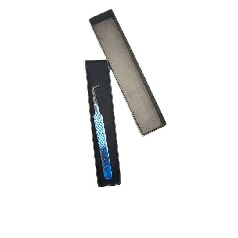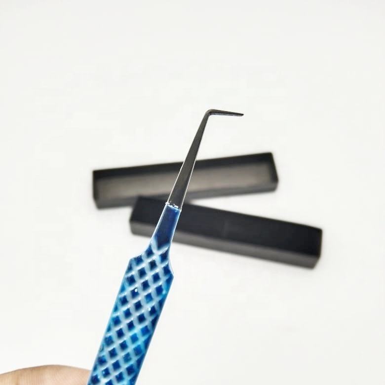 Eyelash Extension 90-Degree Tweezer Blue Powder & Black Tip Eyelash Tweezer Sustainable Stainless Steel Customized Logo