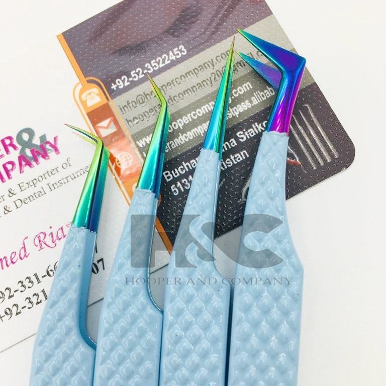 Eyelash Extension Tweezers New Light Blue Color Coating Hand Made Lash Tweezers Hot Sale Laser Logo mink Sustainable Tweezer