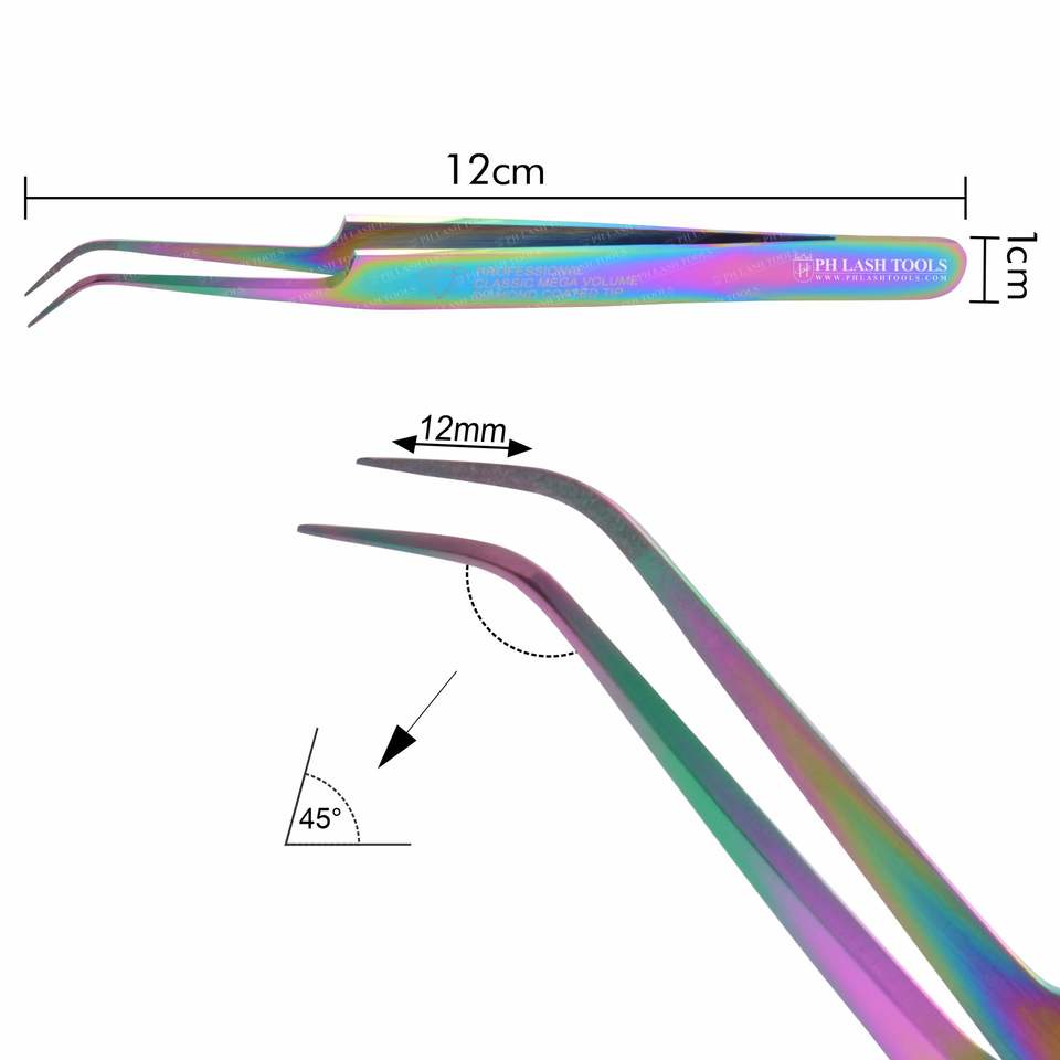 Eyelash Extension Volume Tweezers Fine Bent Tweezers 12mm 45 Degree, Volume and Isolation Tweezers, Lash Extension Tweezers