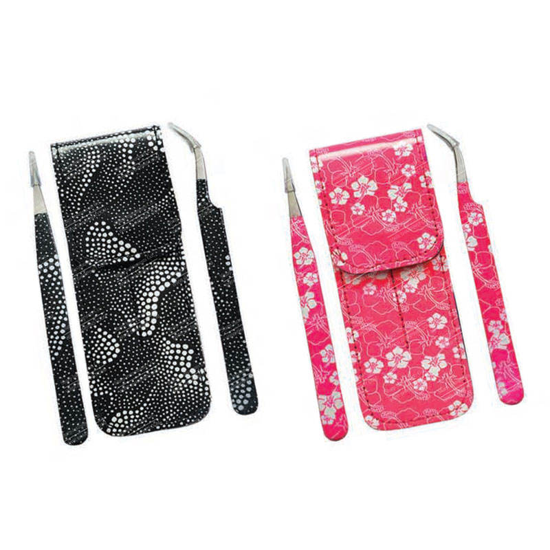 Eyelash Tweezers 2 Piece Set with Magnet Button Pouch with-Pattren