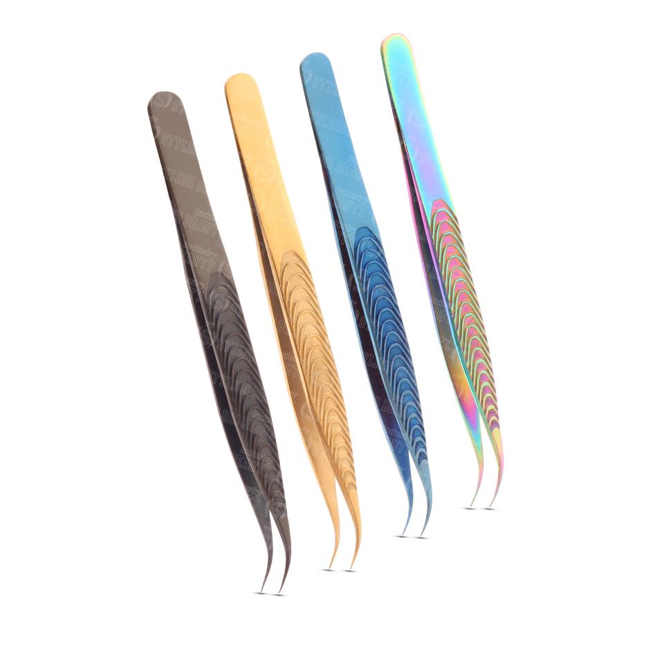 Eyelash extension tweezer precision tool designed to isolate pick and apply individual volume lash extensions private label