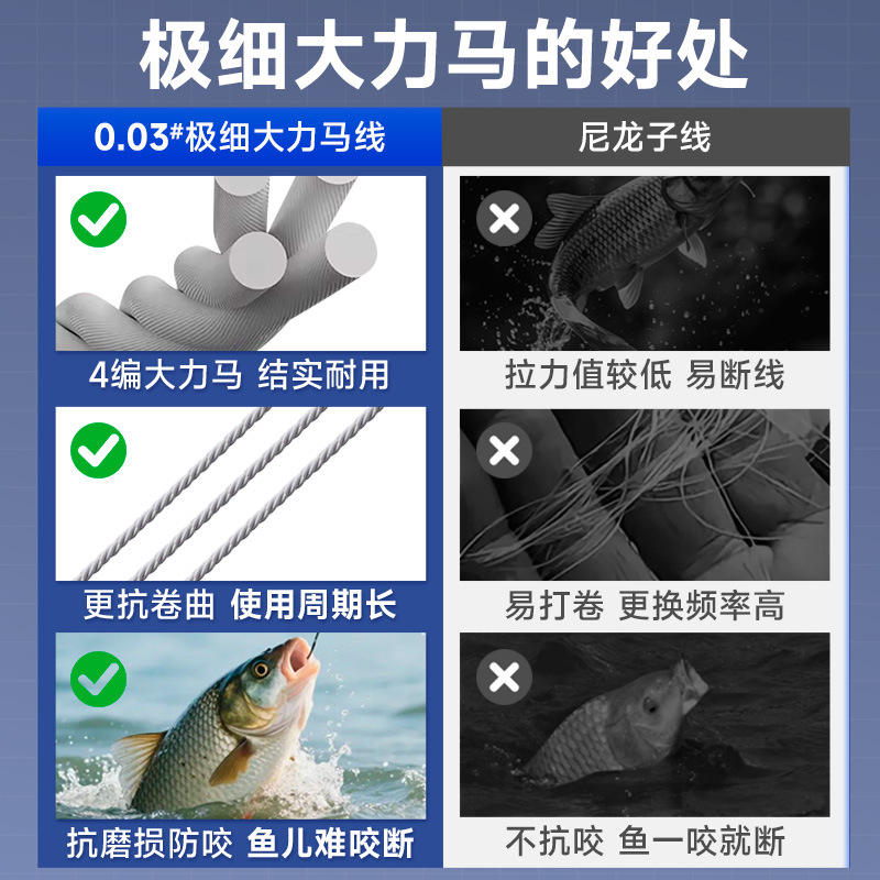 Ezhand Super Fine Dyneema Flip Hook Double Hook Leader Finished Product For Crucian Carp Freshwater Fishing
