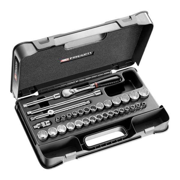 FACOM - JL.430AMU Set of 3/8'' metric and inches 12-point sockets – 34 pieces - EAN 3662424074356 RATCHET AND SOCKET SETS 3/8"