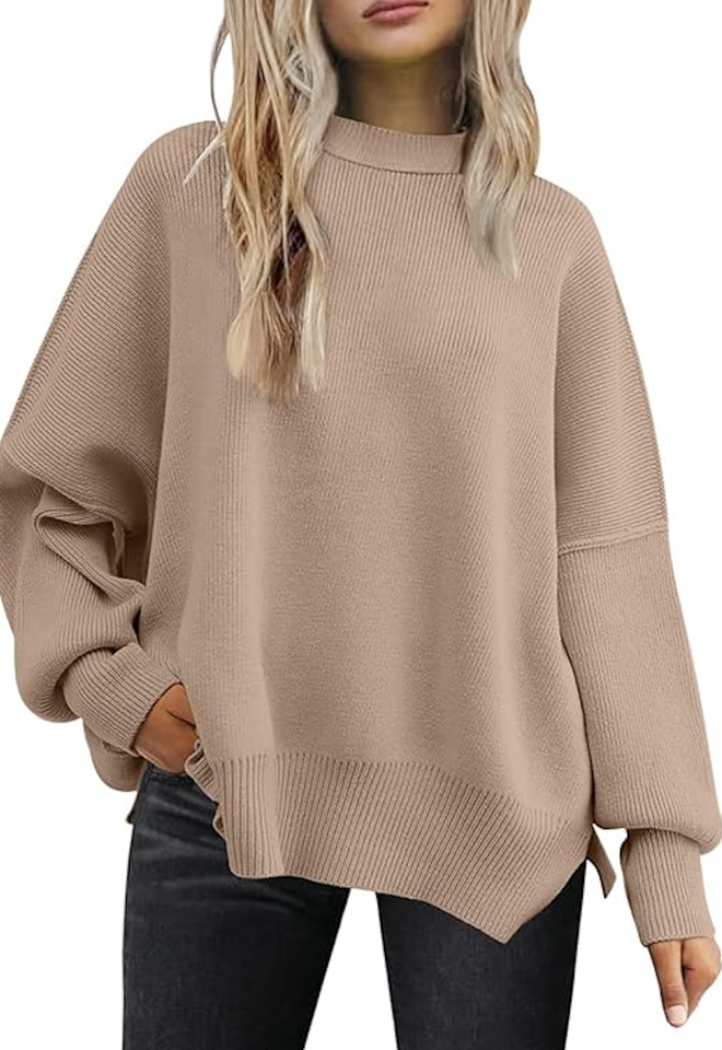 FALL WOMEN CHRISTMAS SWEATER OVERSIZED BATWING TRENDY CREWNECK SIDE SLIT KNIT PULLOVER TOPS LOOSE CASUAL KNITTED TOP