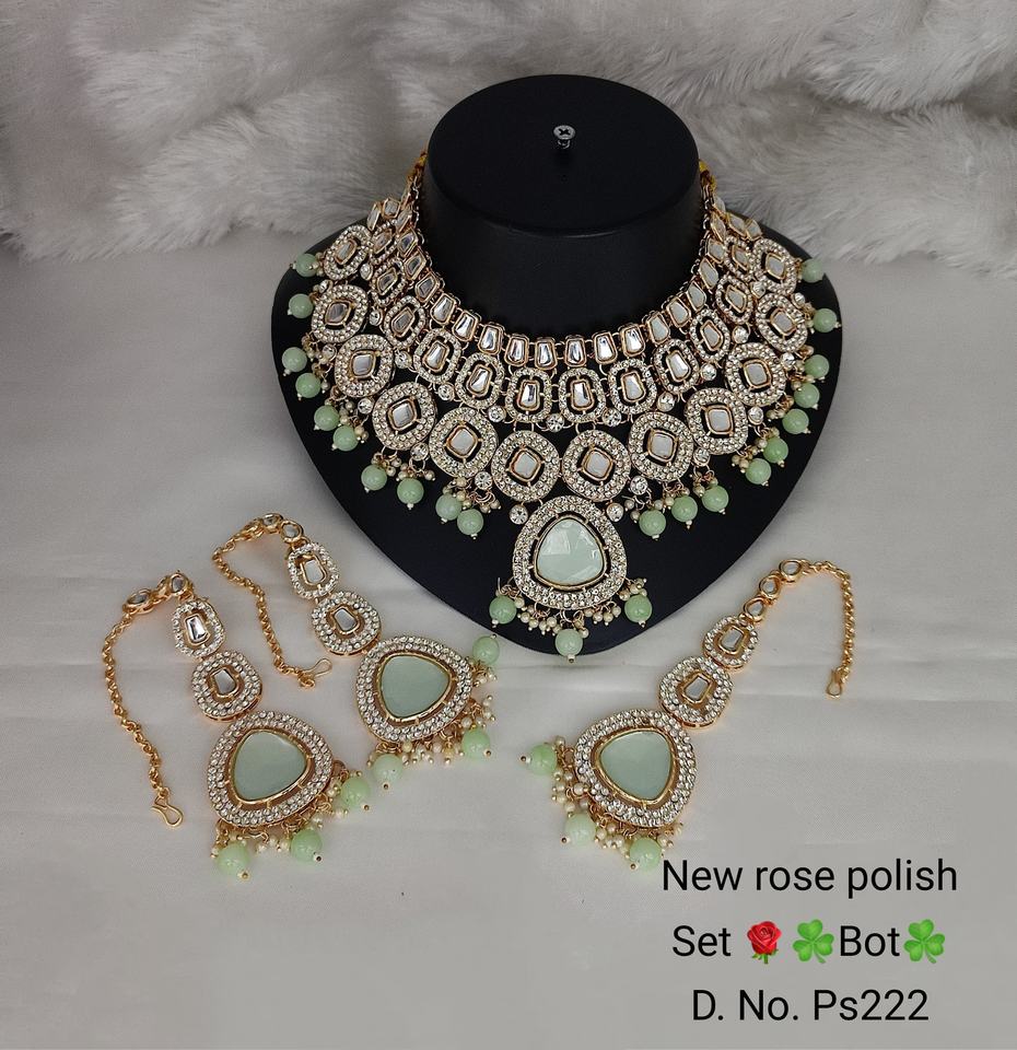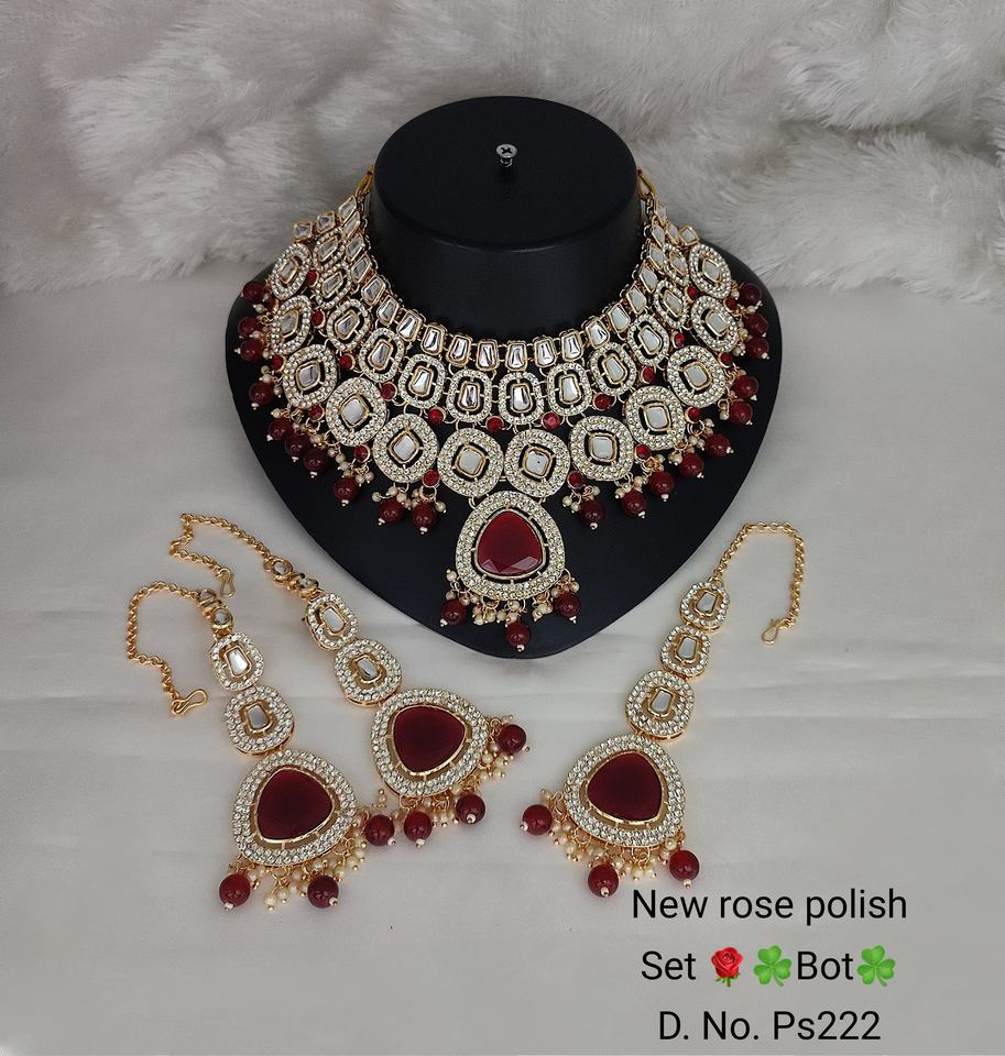 FANCY ANTIQUE TRADITIONAL and FASHIONABLE GOLD TONE KUNDAN PEARL CHOKER NECKLACE EARRING SET WITH MANGTIKA for WOMEN and GIRL